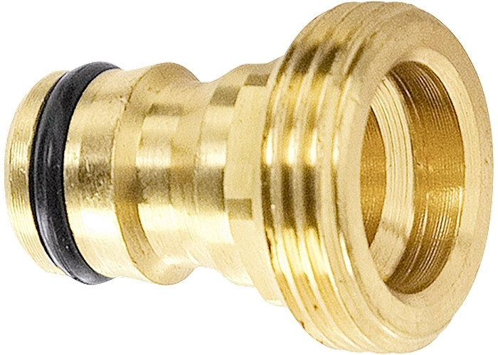 Адаптер изготовлен из латуни. Посадочный диаметр с внешней резьбой 3 4”, с другой стороны – штуцер (быстросъемное соединение). Посадочный и быстросъемный диаметр адаптера совместим со всеми адаптерами, быстросъемными соединителями, тройниками, разбрызгивателями латунной и пластиковой поливочной серии PALISAD.