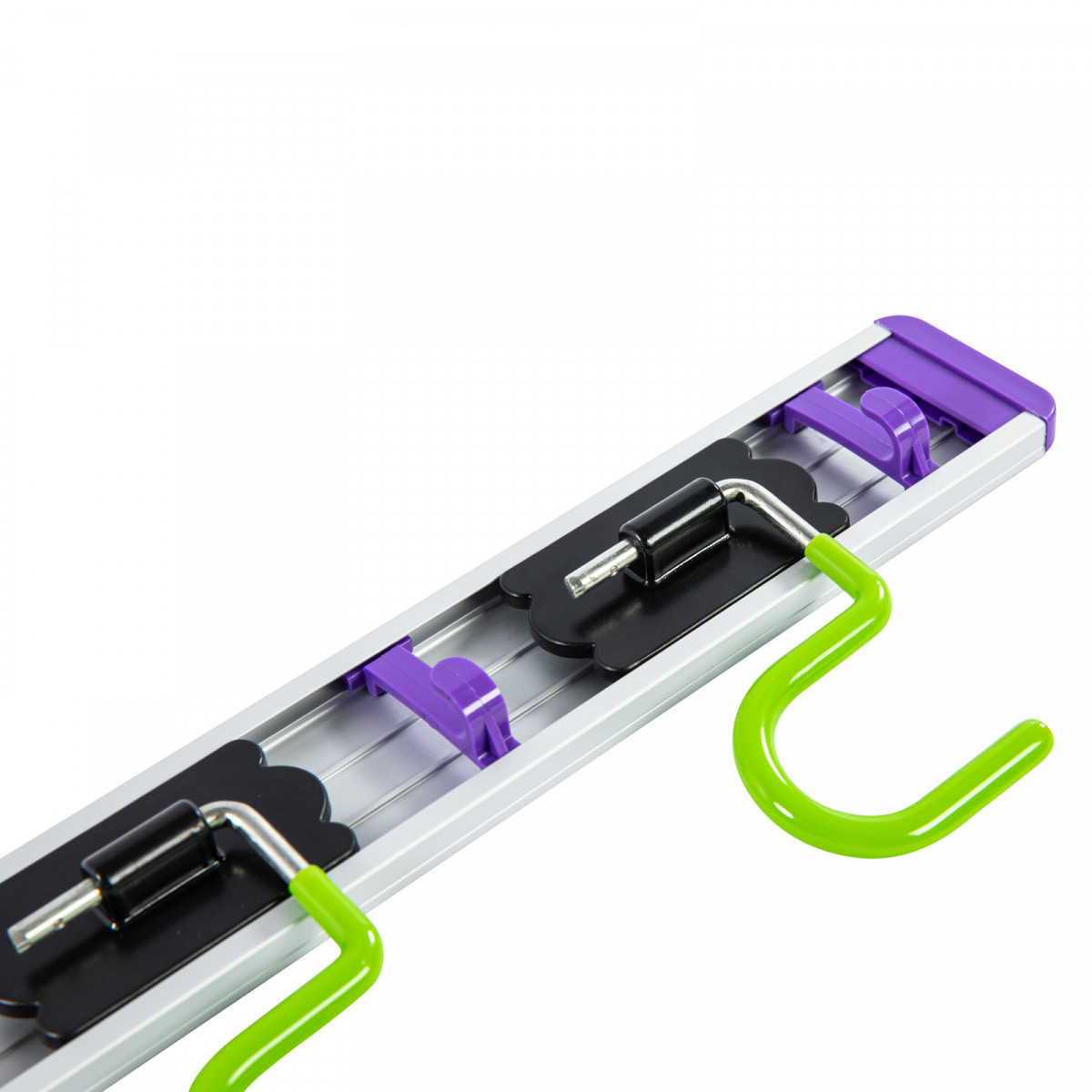 • Алюминиевый держатель выдерживает нагрузки до 15 кг, крючки — до 3 кг каждый.