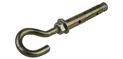 Анкер двухраспорный с полукольцом состоит из шпильки с резьбой с одной стороны и полукольцом с другой, как и обычный двухраспорный анкер он имеет 2 или 3 распорные гильзы и распорную часть на конус снизу. Для облегчения процесса монтажа комплектуеться гайкой.Предназначен для крепления тяжеловесных подвесных конструкций, в случаях когда требуется надежное не разъемное соединение. Часто применяется в такелажных работах для зацепки троса или цепи больших диаметров, как правило используют трос стальной, реже синтетический канат.Применятся при работе с бетоном, полнотелым кирпичом, природным камнем.Изготовлен из стали, покрытый - желтым цинком.