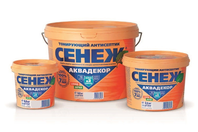 Тонирующий антисептик на алкидно-акрилатной основе с УФ фильтром и воском для долговременной защиты и отделки древесины от атмосферных осадков, плесневых, деревоокрашивающих и дереворазрушающих грибов, водорослей и насекомых-древоточцев, а также декоративной отделки под ценные породы. Сочетание в СЕНЕЖ АКВАДЕКОР алкидов, акрилатов и льняного масла улучшает проникновение в древесину, формирует эластичное дышащее защитное покрытие с мягким шелковистым блеском.