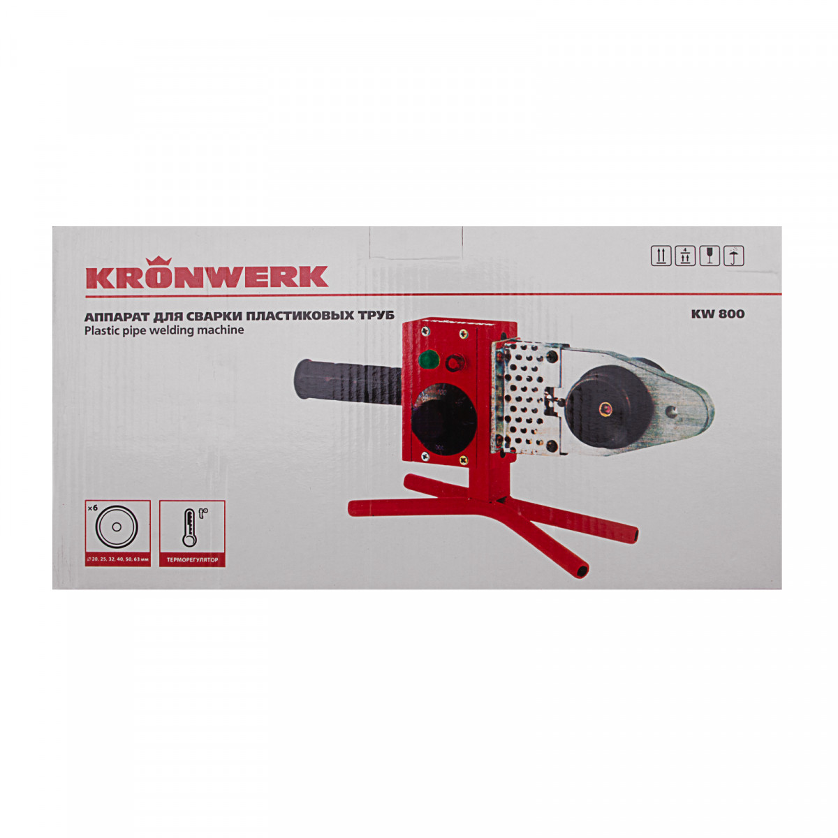 Аппарат для сварки пластиковых труб К W 800, 800 Вт, 300 °C, 20-25-32-40-50-63 мм, металлический кейс Kronwerk