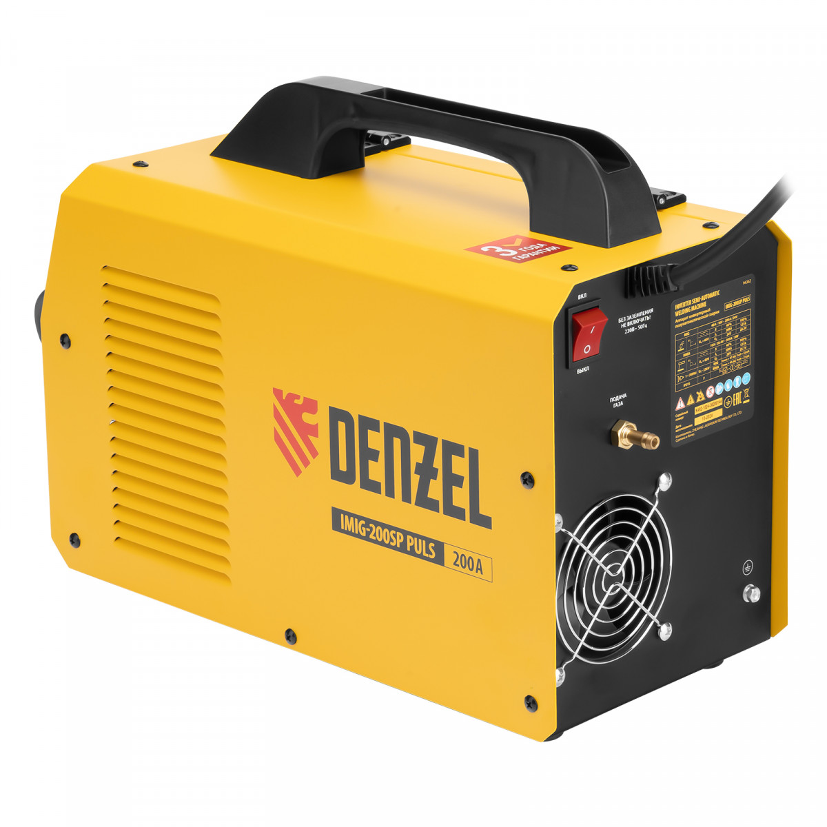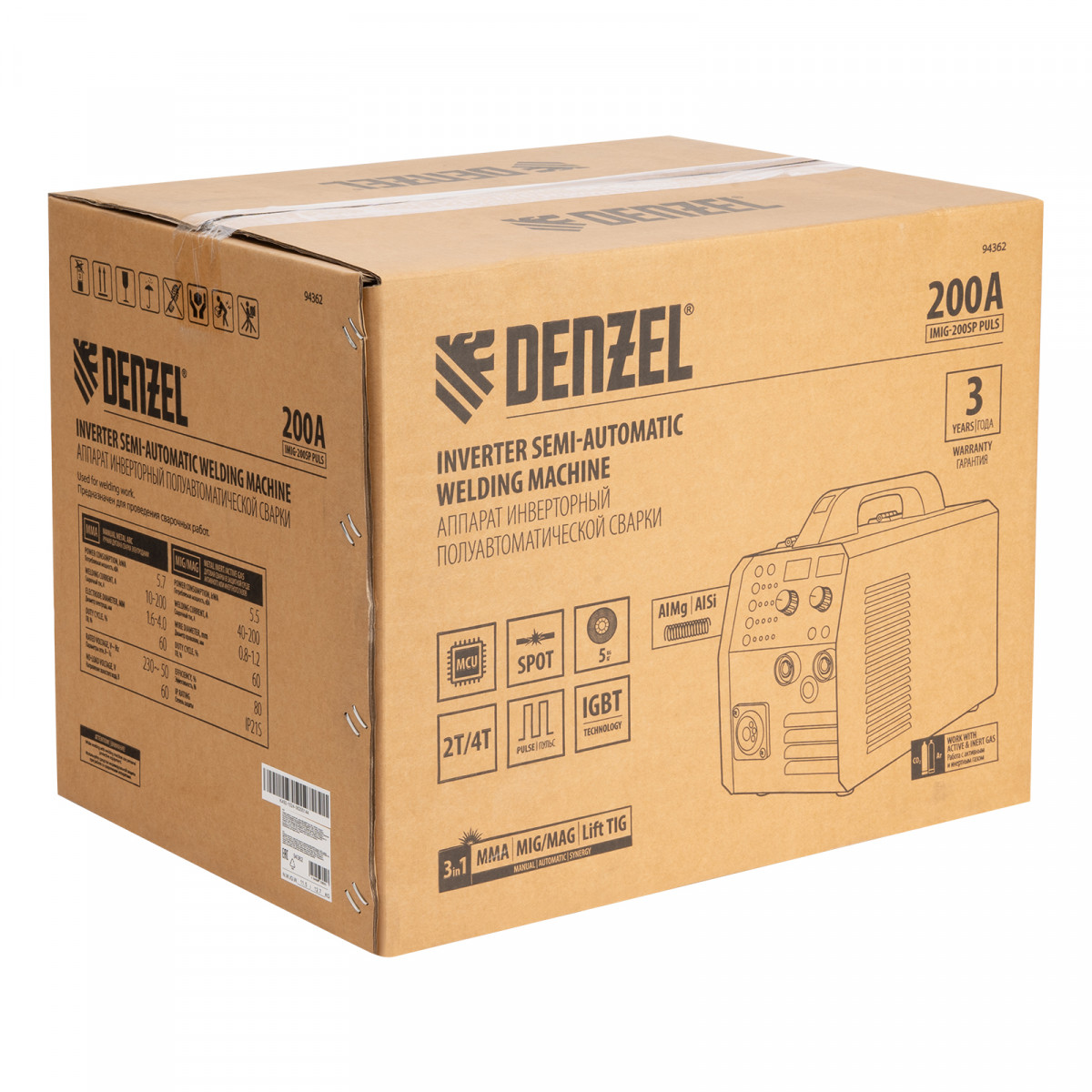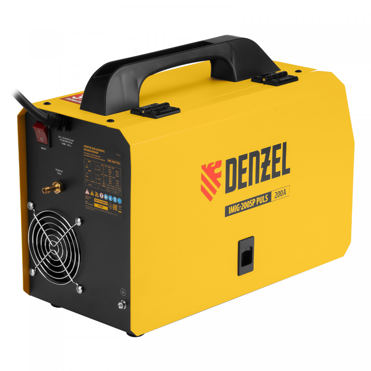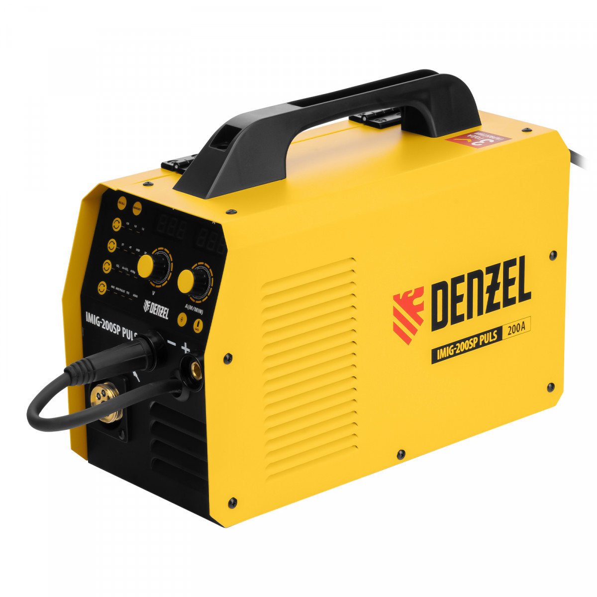 Инверторный аппарат полуавтоматической сварки Denzel IMIG-200SP Pulse совместим с катушками массой до 5 кг, работает со сварочным током до 200 A, продолжительность включения составляет 60%. Предназначен для сварки в среде защитных газов (MIG/MAG), сварки порошковой проволокой (FCAW), покрытым электродом (MMA), а также аргонодуговой сварки неплавящимся электродом (Lift TIG). Горелка TIG не входит в комплект поставки. При включенном режиме MIG PULSE доступна сварка пульсирующим постоянным током деталей или изделий из алюминиево-магниевого, а также алюминиево-кремниевого сплава.