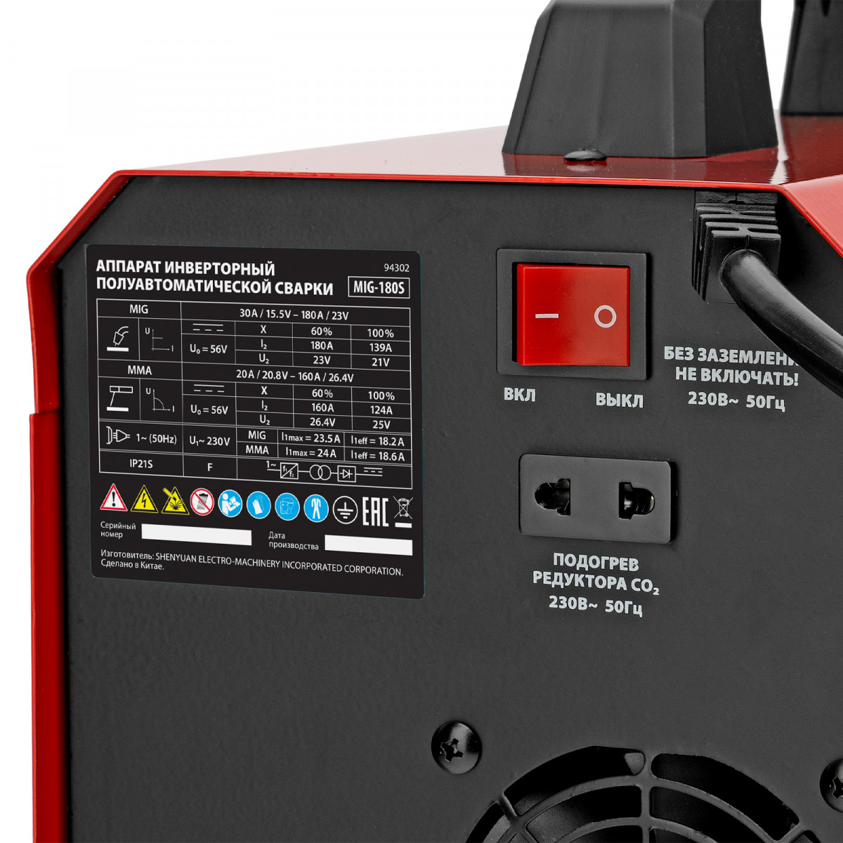 Инверторный аппарат полуавтоматической сварки MTX MIG-180S 94302, предназначенный для сварки на максимальном токе до 180 А, имеет продолжительность включения 60% и совместим с катушками весом до 5 кг. Используется для работы со сталями и черными металлами. Сварочный аппарат изготовлен с использованием передовой технологии IGBT, позволяющей получать стабильный сварочный ток на выходе. Аппарат имеет высокий КПД при низком энергопотреблении, способен работать при пониженном до 180 В напряжении.