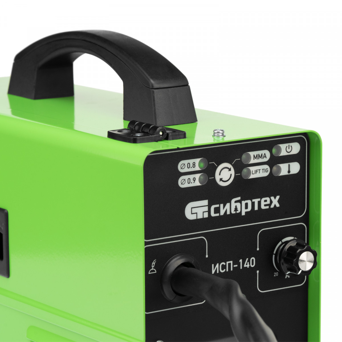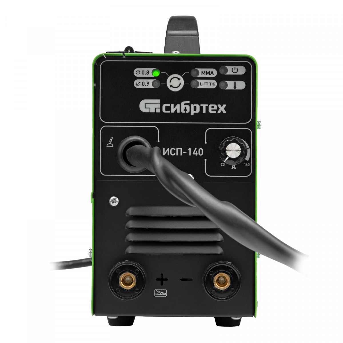 Инверторный аппарат полуавтоматической сварки Сибртех ИСП-140 94321 работает с максимальным сварочным током 140 А, время продолжительности включения составляет 60%. Аппарат позволяет работать в режимах MMA (сварка покрытым электродом диаметром до 4 мм), сварки флюсовой проволокой FCAW диаметром 0,8/0,9 мм без подачи газа и в режиме аргонодуговой сварки неплавящимся вольфрамовым электродом LIFT TIG (горелка в комплект не входит). Применение передовой инверторной технологии IGBT обеспечивает стабильный постоянный сварочный ток на выходе. Аппарат подходит для профессионального использования.