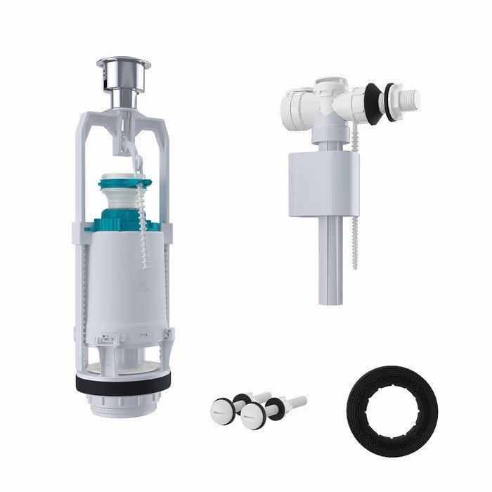 Одноуровневая арматура с боковым подводом воды (тип А). Комплектация: Круглая резиновая прокладка, пластиковые крепления-болты (2 шт.), паспорт изделия. Все подвижные части находятся внутри защитного корпуса и изготовлены из высококачественного пластика.