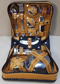 Отличный подарок для любителей туризма и рыбалки, а также активного отдыха. Подходит для небольших компаний. Набор внутри и снаружи, фляга декорированы натуральной кожей с рисунком, сделанным по технологии художественного выжигания. Изделия изготовлены из нержавеющей стали, благодаря чему будут служить владельцу долгие годы.