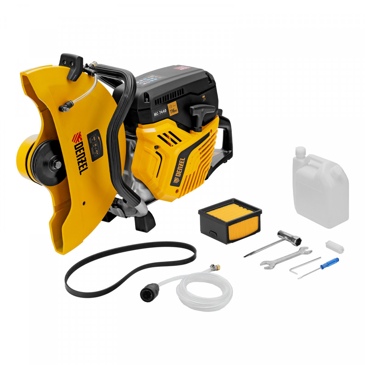 Бензорез Denzel MC-7440 66302 предназначен для работы с бетоном, асфальтом, чугуном, сталью и другими твердыми материалами. Оптимален для проведения демонтажных работ на строительной площадке, также может применяться во время спасательных операций. Для работы используются алмазные, абразивные и зубчатые диски диаметром 400 мм. Эффективное решение поставленных задач обеспечивает двигатель объемом 74 см3 и мощностью 4,8 л.с., для удобного выбора режущего диска имеется два посадочных диаметра: 20 и 25,4 мм.
