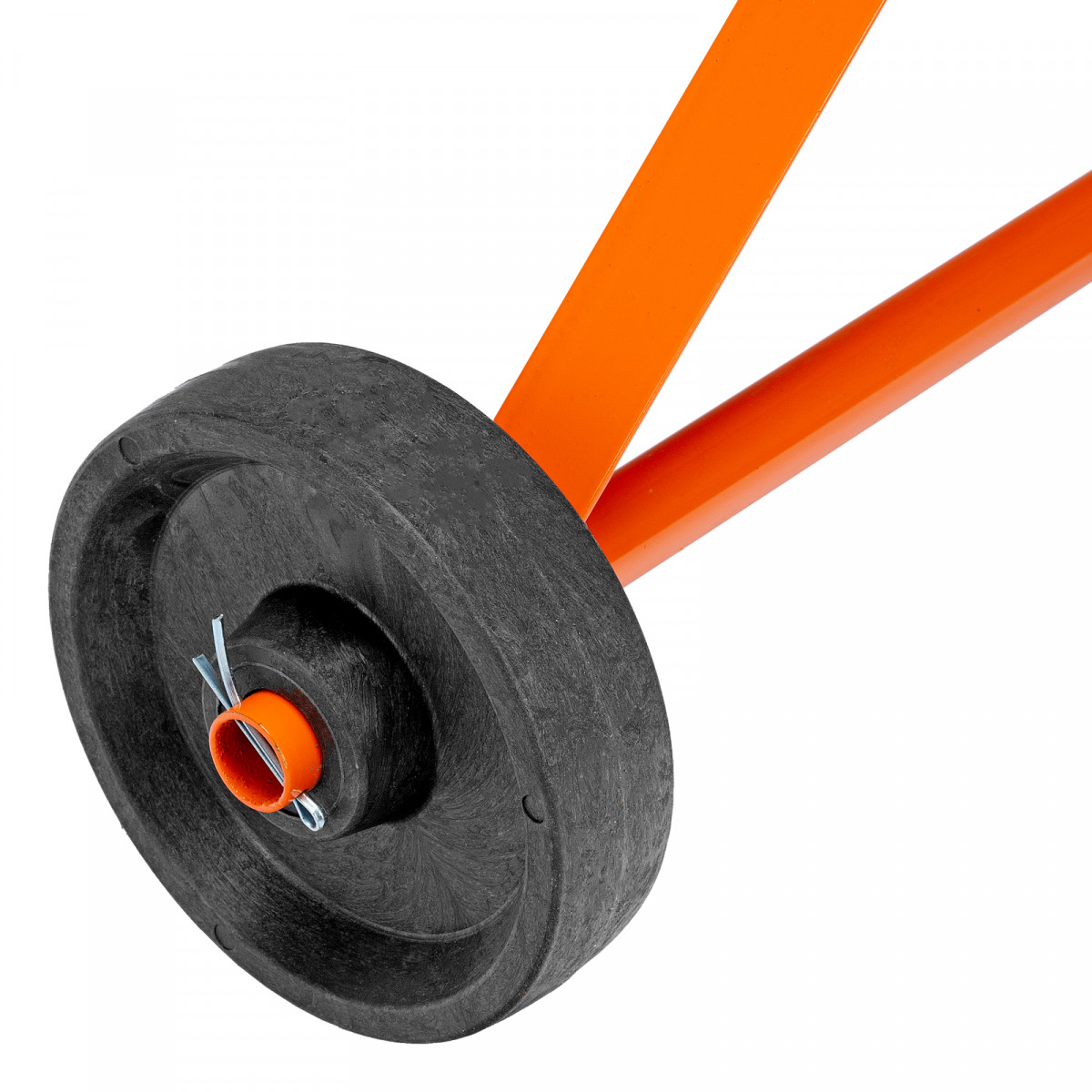 - Удобная загрузка и выгрузка смеси — барабан наклоняется при помощи маховика и легко фиксируется в нужном положении.