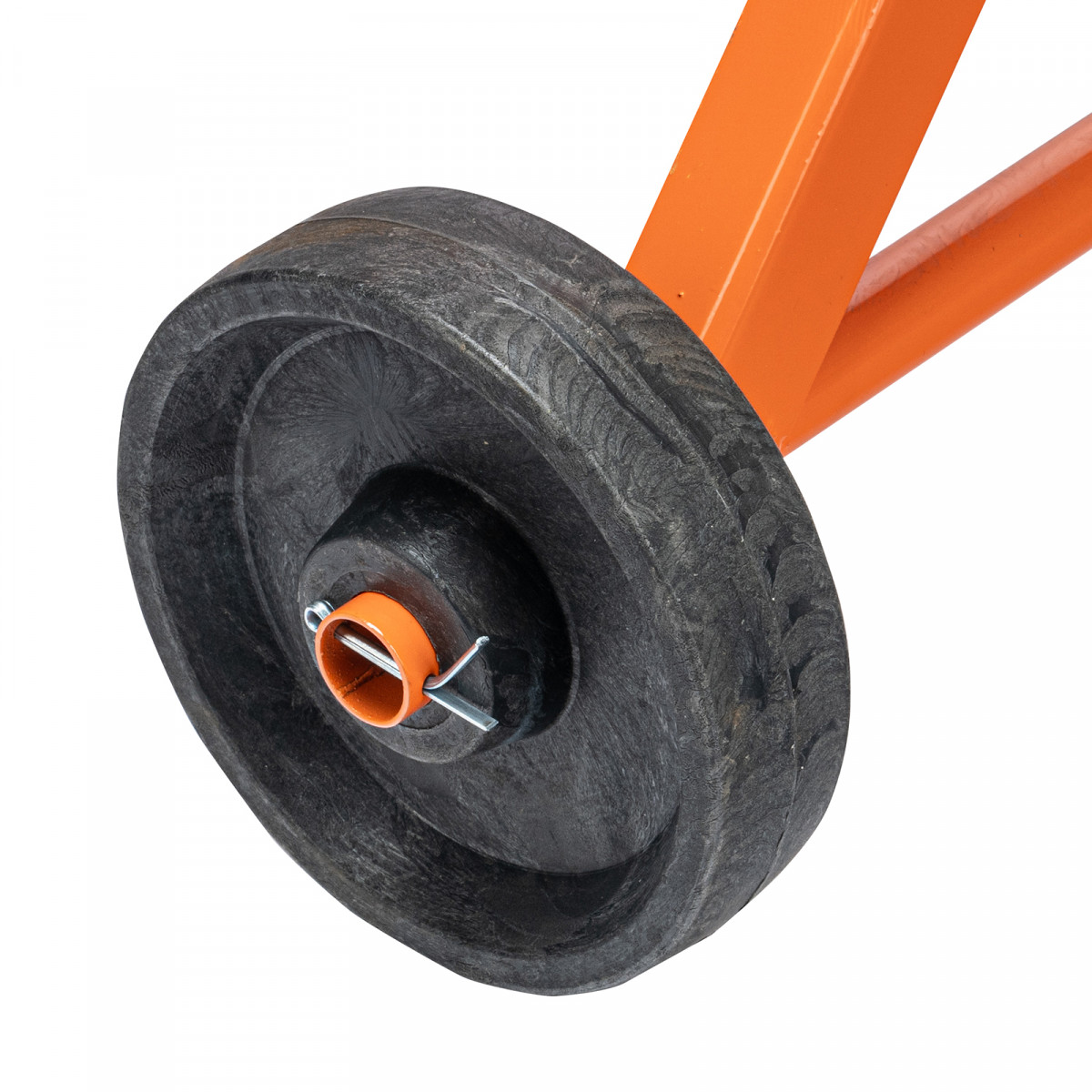 - Удобная загрузка и выгрузка смеси — барабан наклоняется при помощи маховика и легко фиксируется в нужном положении.