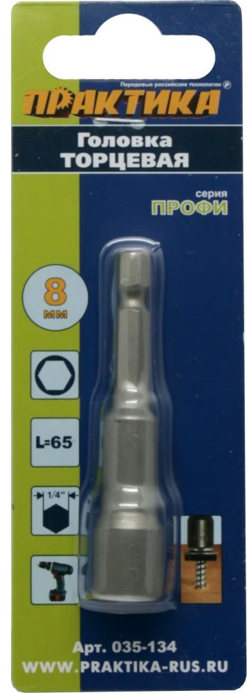 Бита 8*65 мм шестигранная магнитная хвостик НЕХ 1/4", в блистере ПРАКТИКА