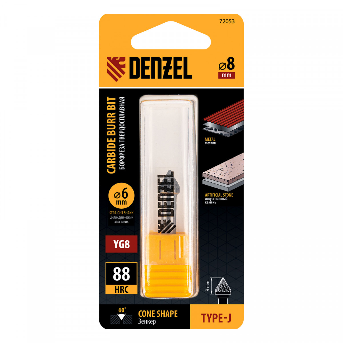 Борфреза по металлу твердосплавная, зенкер 60 град., тип-J, 8 мм Denzel