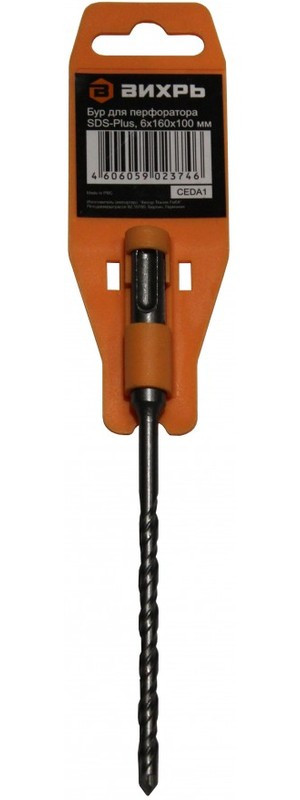 Бур по бетону Вихрь КВАДРО 6x160x100 предназначен для ударного сверления отверстий перфораторами с системой крепления SDS-Plus.