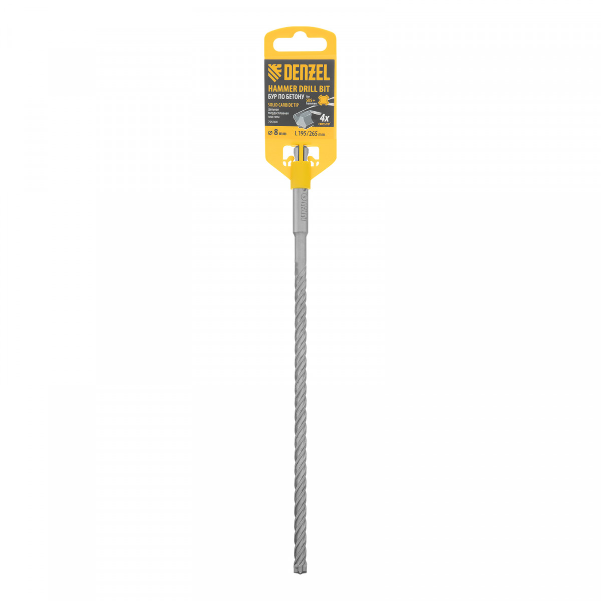 Бур по бетону, цельная крестовая пластина, 8x265 мм, SDS PLUS Denzel