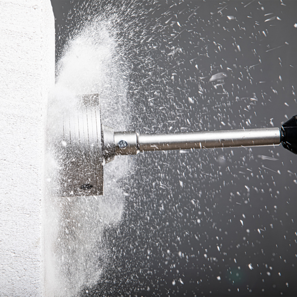 Улучшенный отвод продуктов сверления снижает нагрузку на перфоратор и повышает скорость работы.