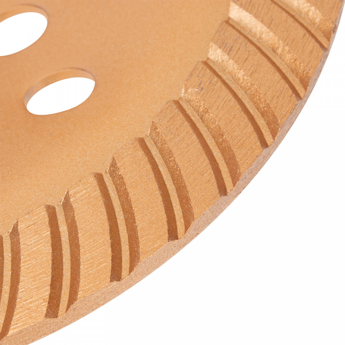 Высокий ресурс рабочего слоя алмазной зачистной чашки — 6 мм толщиной, 56 сегментов.