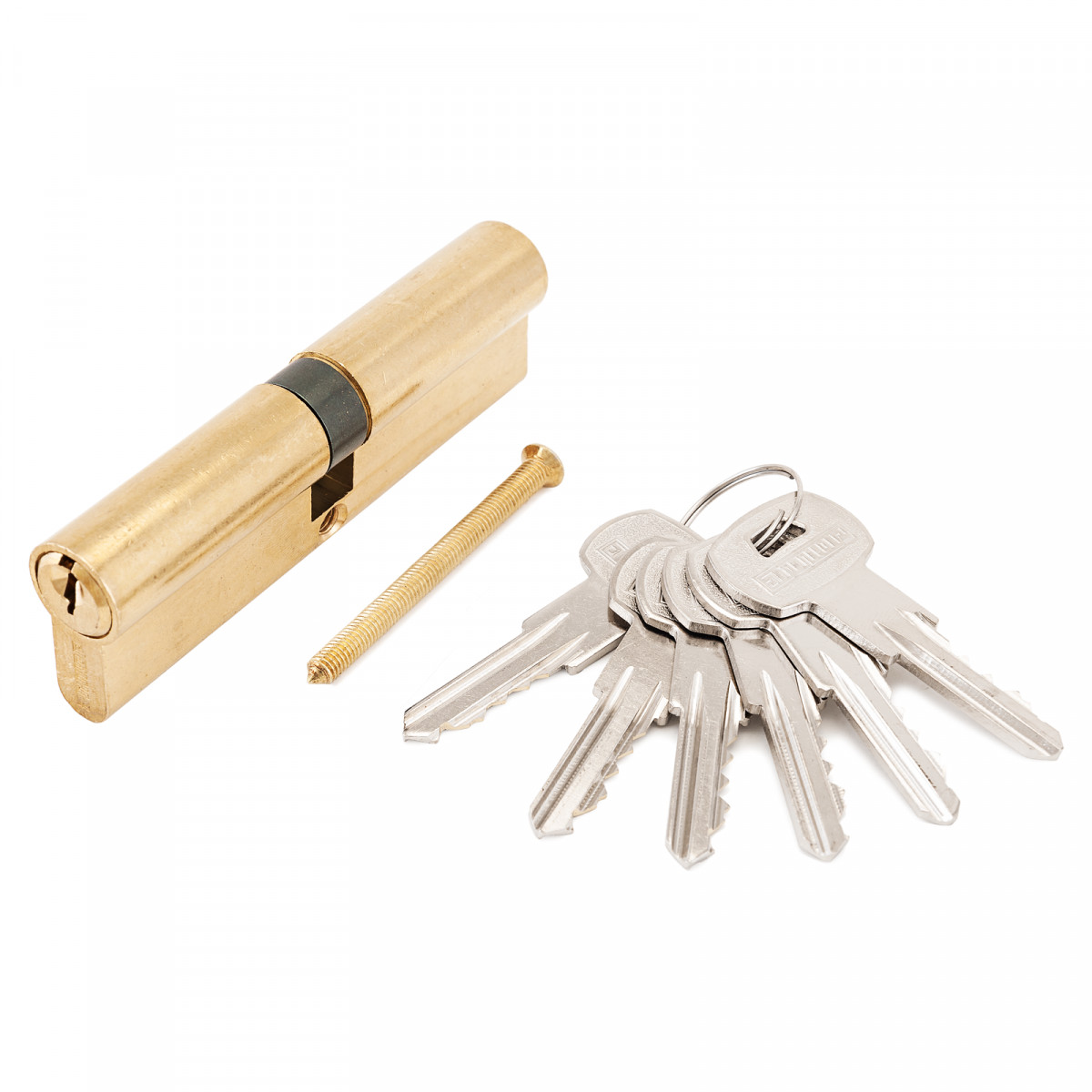 Механизм цилиндровый для врезных замков. Европрофиль. Английский ключ. Материал корпуса и ключей – латунь. Ключ-ключ. Механизм защищен стержнем от высверливания. Выступающий на 30 градусов из плоскости механизма кулачок защищает цилиндр от выбивания из двери. Длина механизма - 100 мм (45х10х45).