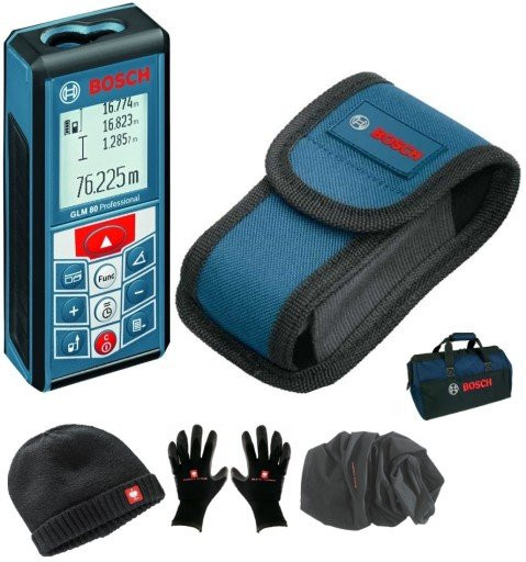 Лазерный дальномер Bosch GLM 80 + зимний набор + сумка - это профессиональный инструмент, предназначенный для измерения высоты, расстояния и вертикального угла наклона.