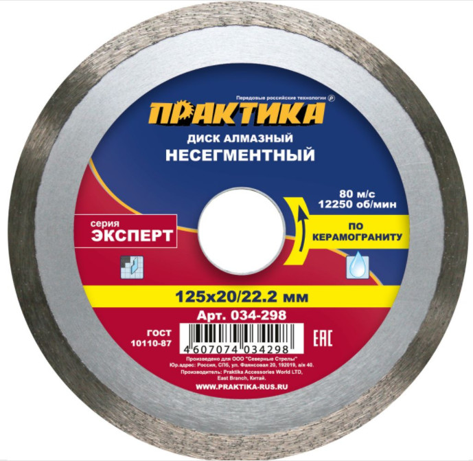 Диск алмазный 125*20/22 мм несегментный "Эксперт-керамогранит" ПРАКТИКА