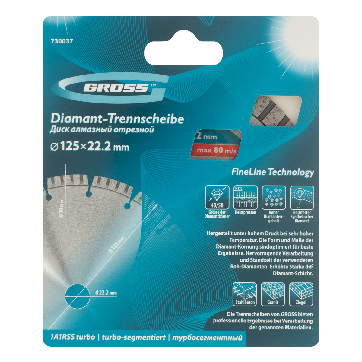 Диск алмазный, 125 х 22.2 мм, лазерная приварка турбо-сегментов, сухая резка Gross