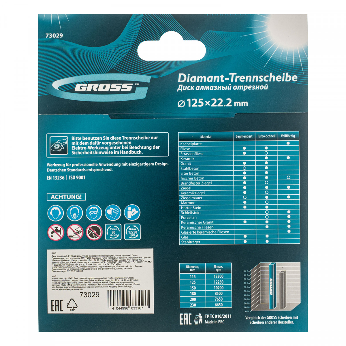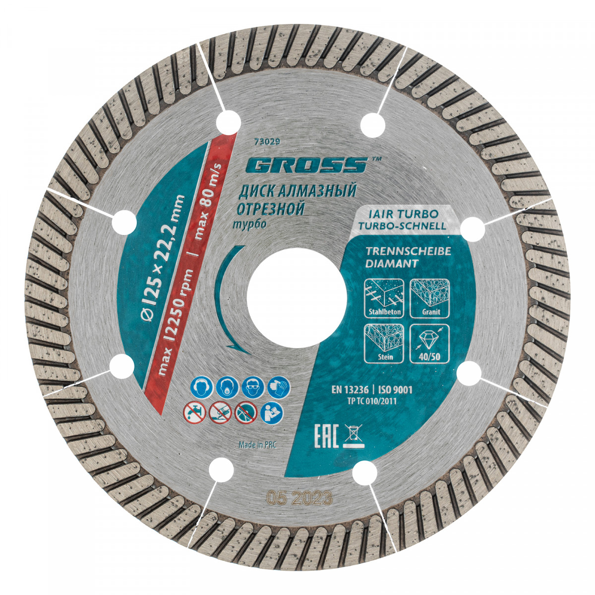 Диск алмазный, 125 х 22.2 мм, турбо с лазерной перфорацией, сухая резка Gross