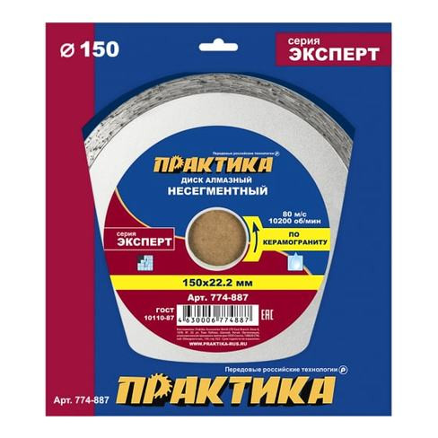 Диск алмазный 150*22 мм несегментный "Эксперт-керамогранит" ПРАКТИКА