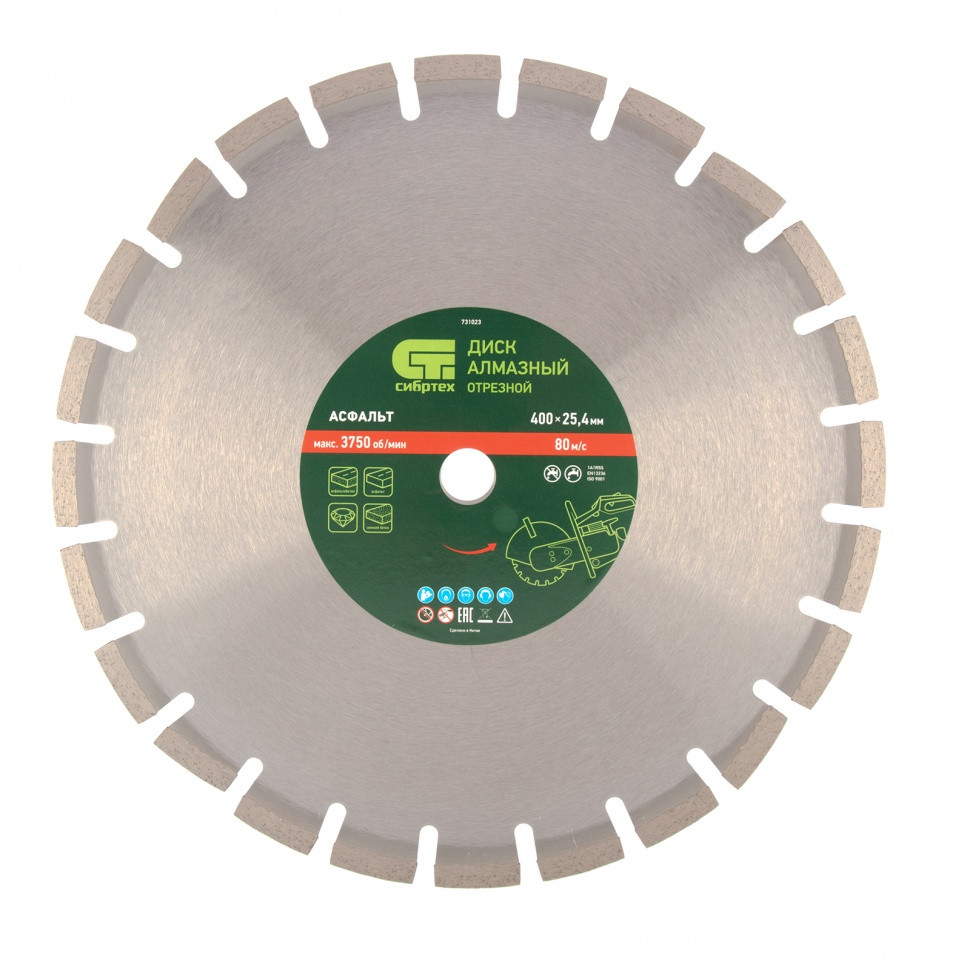 Диск алмазный 400 х 25.4 мм, "Асфальт", сухой/мокрый рез Сибртех
