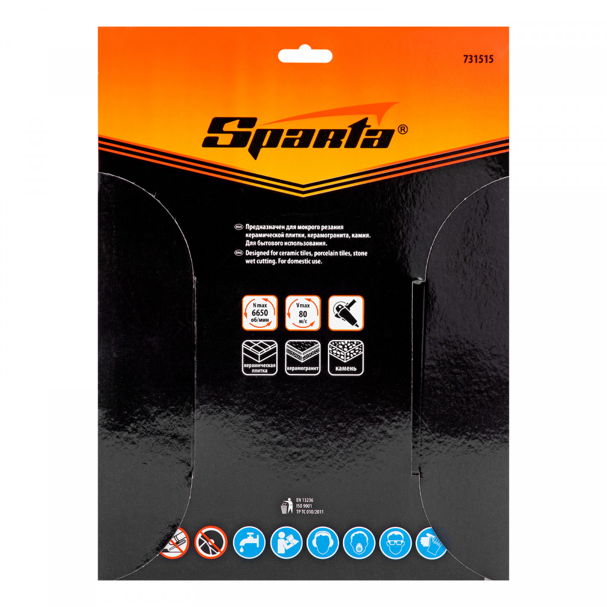 Отрезной алмазный диск Sparta 731515, сплошной, 230 х 22,2 мм, — расходный инструмент для болгарок и плиткорезов, используемый для мокрого резания. Он позволяет выполнить аккуратный рез по керамике, керамограниту и мрамору в бытовых условиях. Рекомендуется применять с использованием водяного охлаждения.