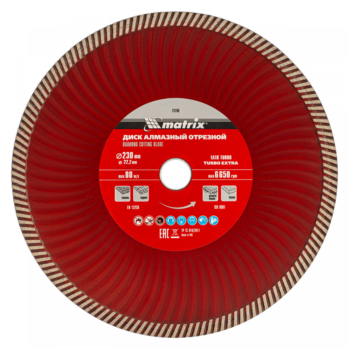 Диск алмазный, отрезной Turbo Extra, 230 х 22.2 мм, сухая резка Matrix Professional