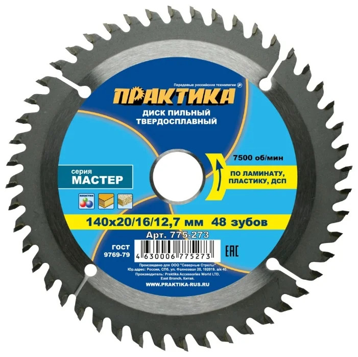 Диск пильный 140*20/16/12,7 мм 48 зубьев по ламинату, пластику, ДСП "Практика"