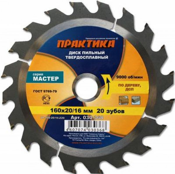 Диск пильный 160*20/16 мм 20 зубьев по дереву, ДСП "Практика"