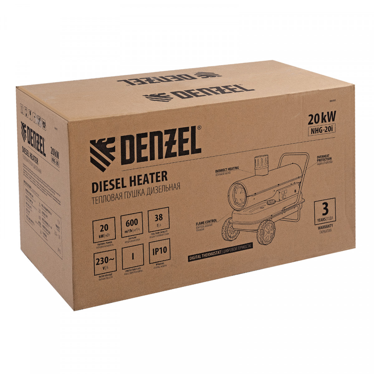 Дизельная тепловая пушка NHG-20i, 20 кВт, 600 м3/ч, непрямой нагрев, цифровой термостат Denzel