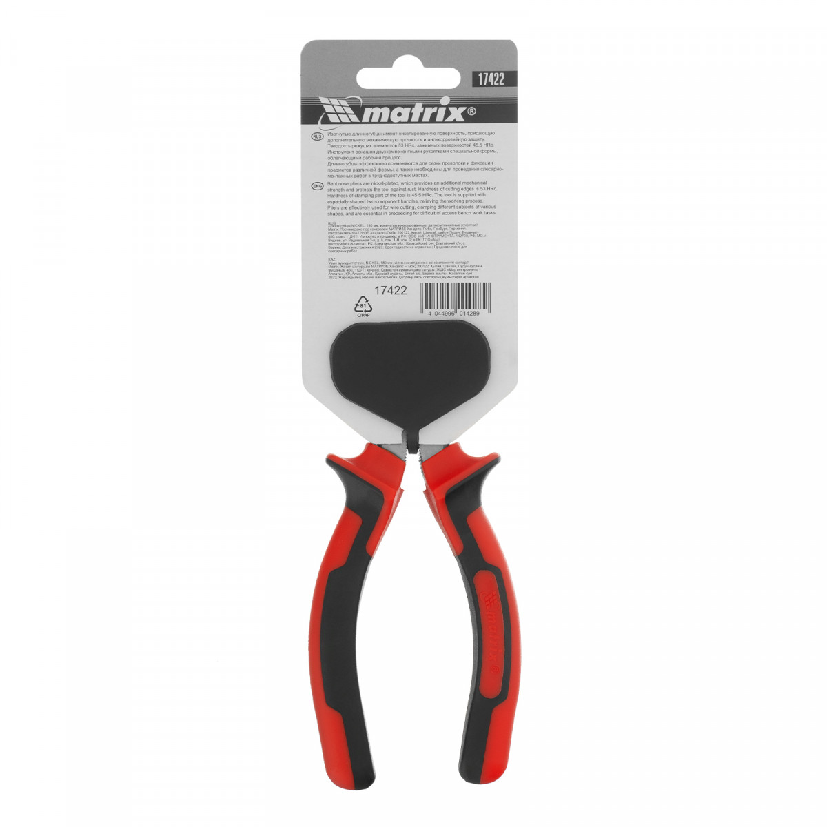 Длинногубцы изогнутые Nickel, 180 мм, никелированные, двухкомпонентные рукоятки Matrix
