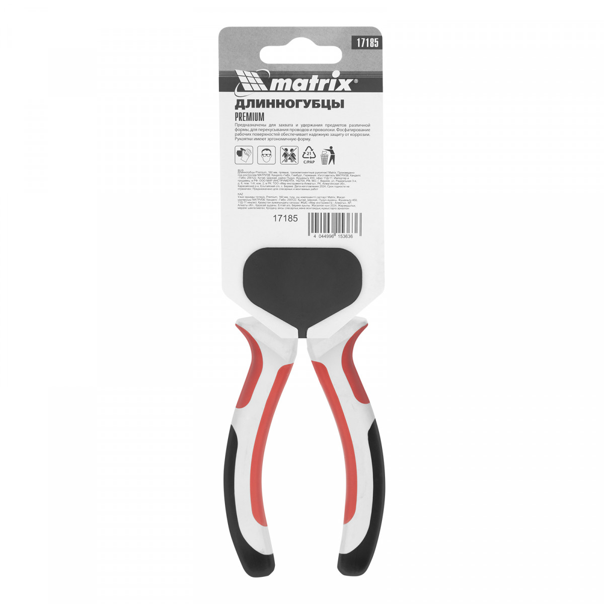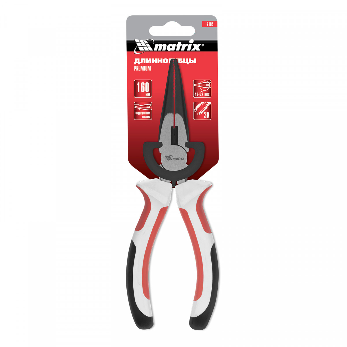 Длинногубцы прямые Premium, 160 мм, трехкомпонентные рукоятки Matrix