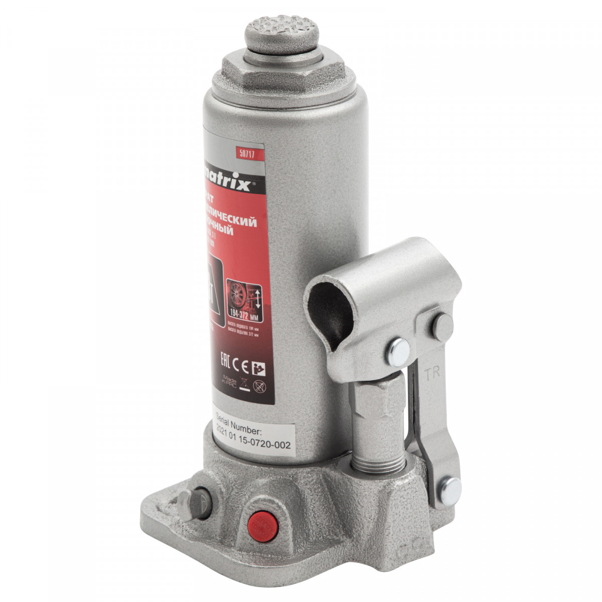 Домкрат гидравлический бутылочный Matrix 50717 используется для поднятия грузов массой до 3 т на высоту 194-372 мм. Подходит для автомобилей с высоким клиренсом. Домкрат будет полезен автолюбителям в гараже и дороге, а также сотрудникам СТО.