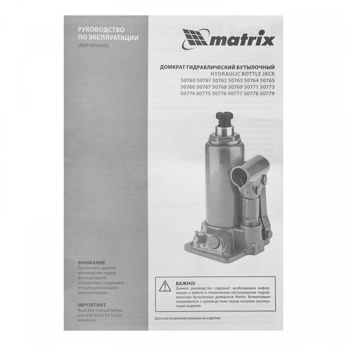 Домкрат гидравлический бутылочный, 6 т, h подъема 216-413 мм Matrix