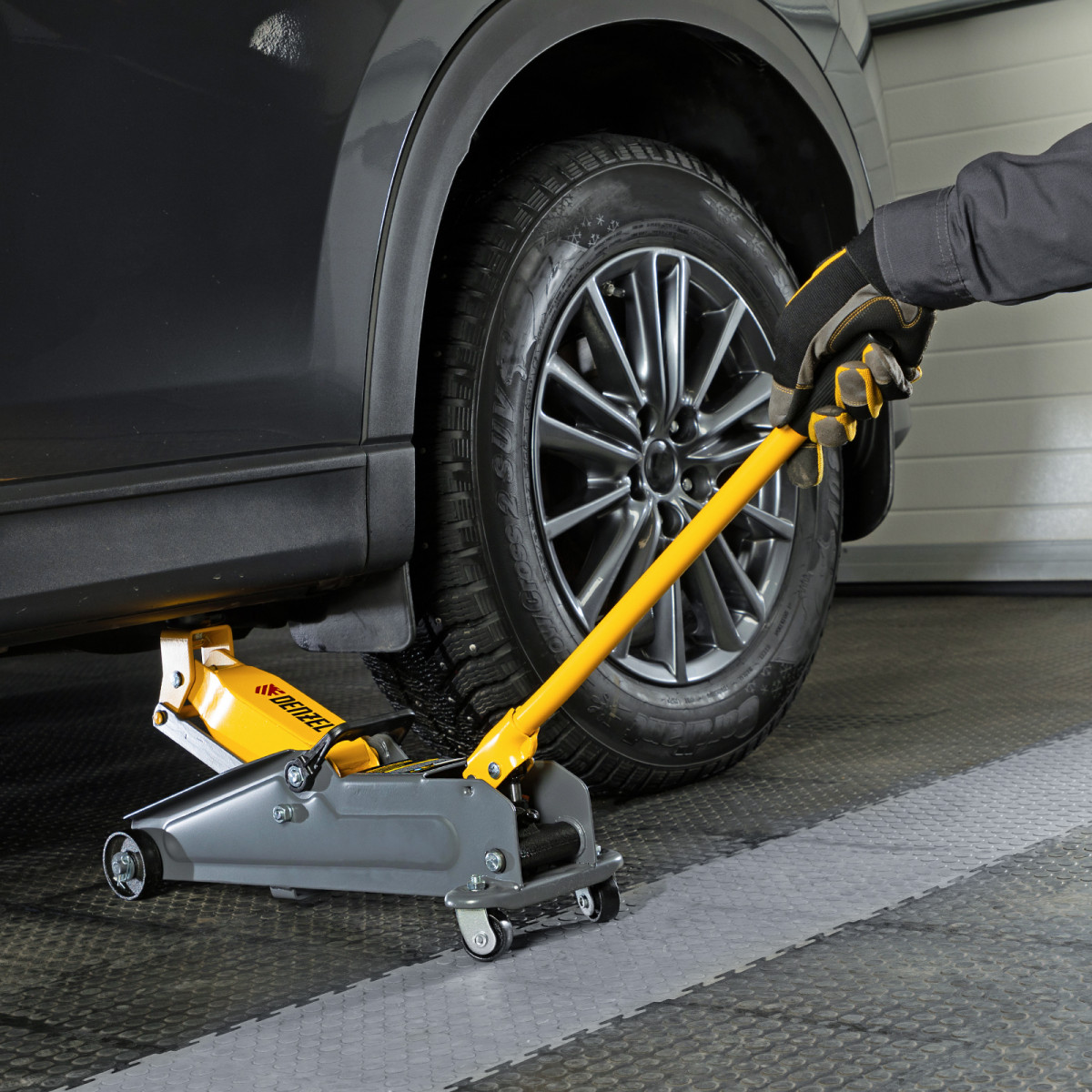 Гидравлический подкатной домкрат Denzel 51230 с высотой подхвата 135 мм предназначен для плавного подъема грузов массой до 2 т на высоту до 385 мм. Домкрат пригодится владельцам легковых автомобилей со стандартным клиренсом.