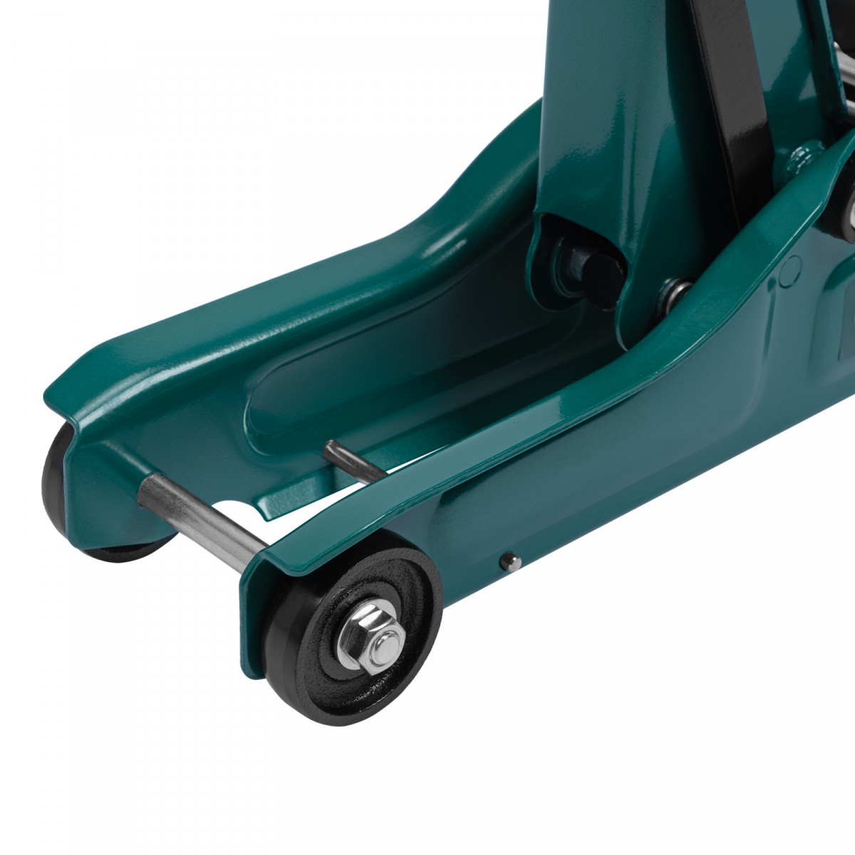 - Маневренность — благодаря поворотным колесам домкрат можно быстро подвести под груз.