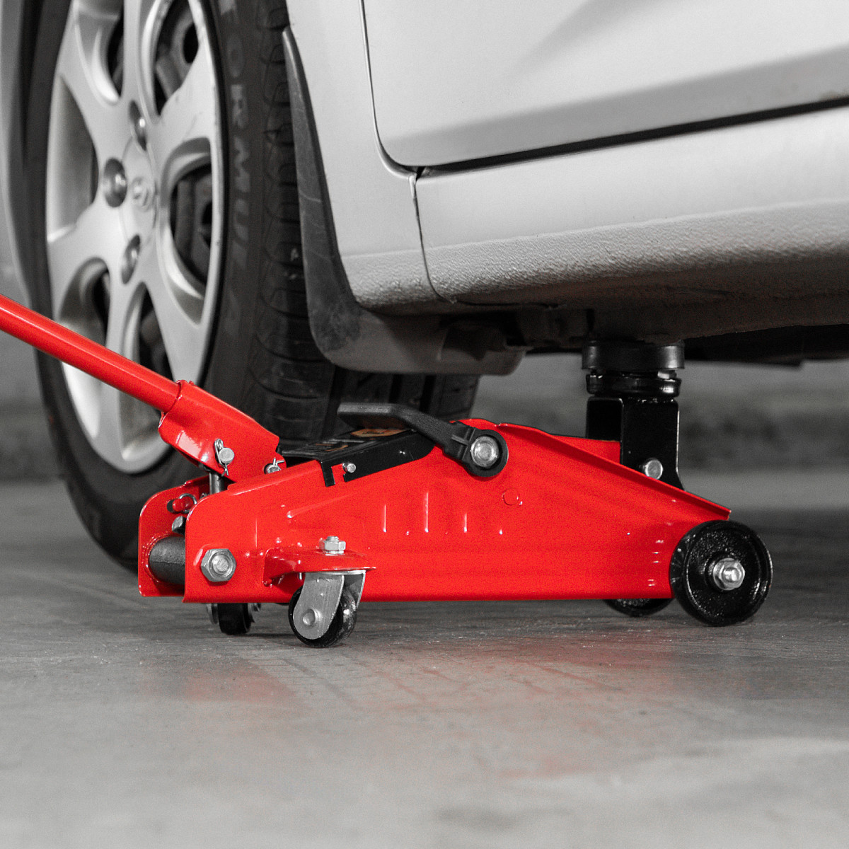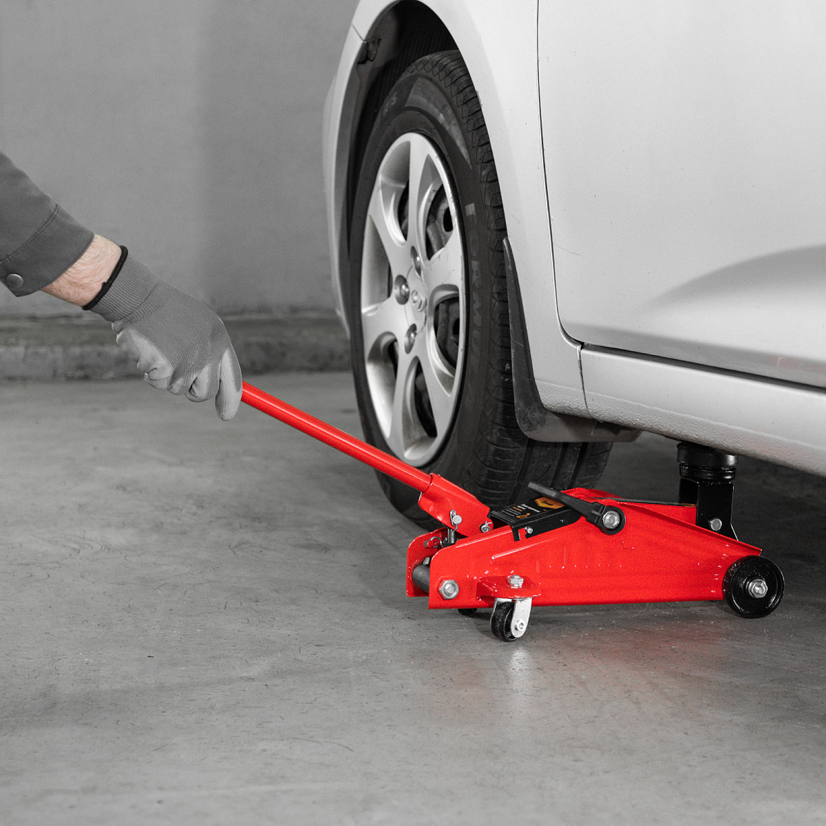 • Мобильность — домкрат снабжен ручкой для удобного перемещения.