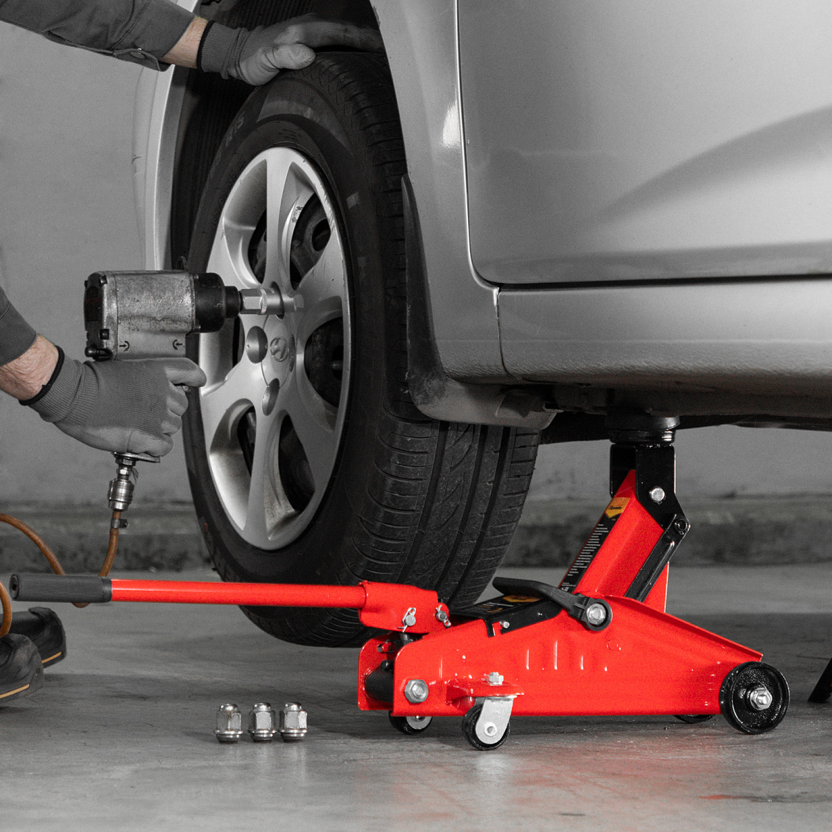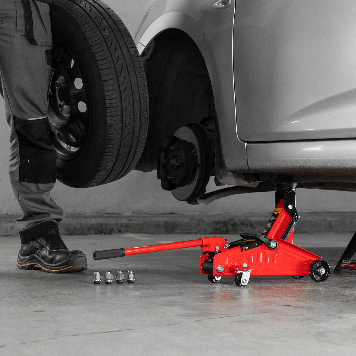 • Вес 6,6 кг — домкрат выдерживает максимальную нагрузку без риска поломки и легко помещается в багажнике автомобиля.