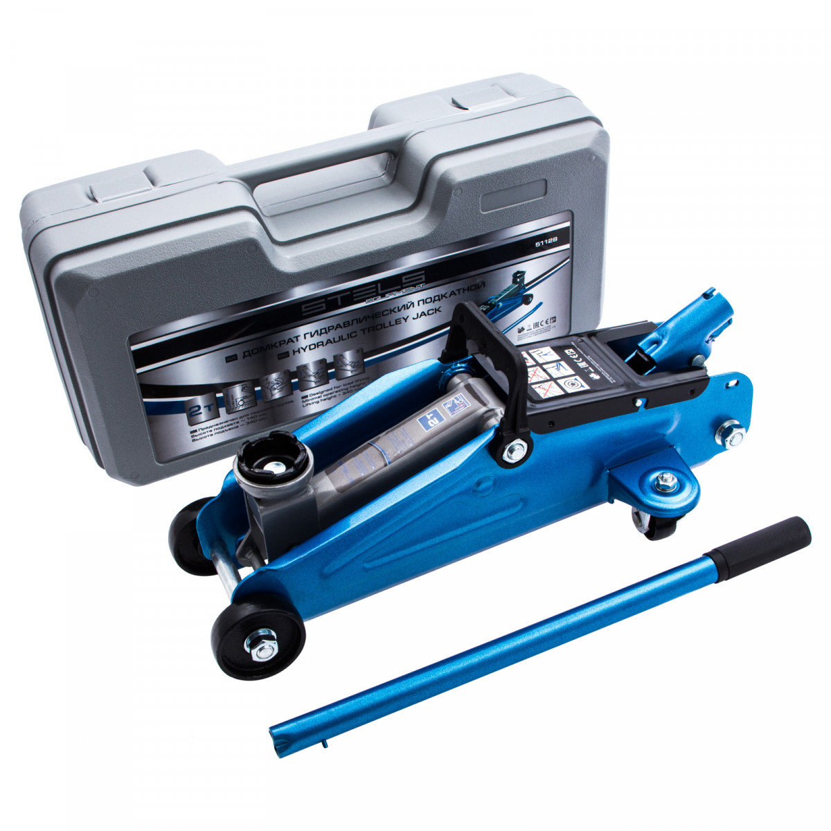 Подкатной гидравлический домкрат Stels 51128, поставляющийся в кейсе, способен поднимать груз массой до 2 т на высоту 140-340 мм. Подходит для легковых автомашин и кроссоверов со стандартным клиренсом. Усиленная конструкция выдерживает повышает надежность домкрата. Домкрат пригодится в частном гараже и на станции техобслуживания.