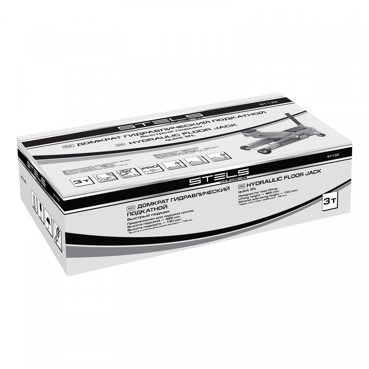 Профессиональный подкатной гидравлический домкрат Stels QUICK LIFT 51133 используется для быстрого подъема на высоту 130-465 мм всех типов автомобилей со стандартным клиренсом и массой до 3 тонн. Благодаря системе QUICK LIFT для достижения предельной высоты достаточно 7 качков рукоятки. Домкрат подходит для использования на станциях техобслуживания и шиномонтажа.