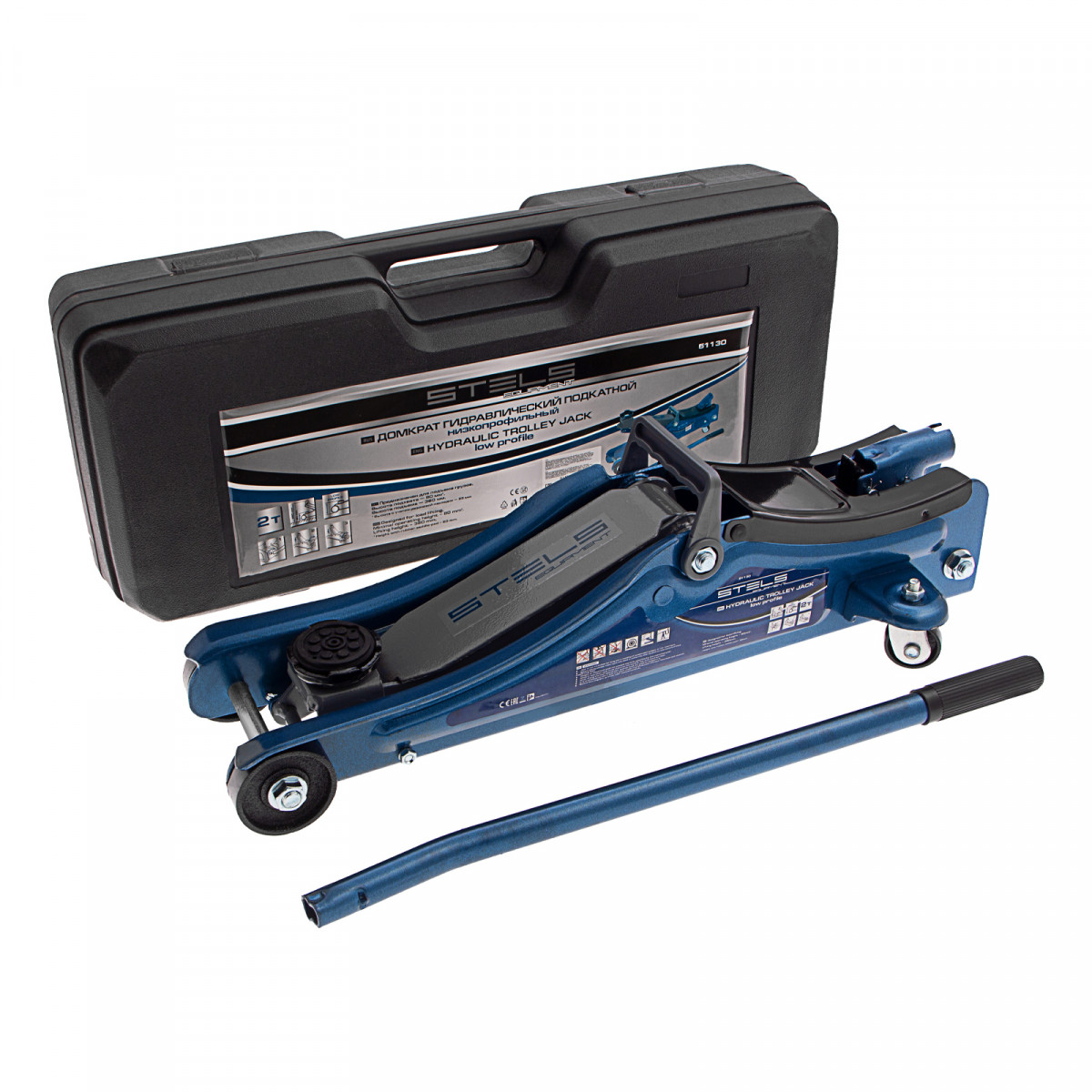 Домкрат гидравлический подкатной в пластиковом кейсе, 2 т, Low Profile, 80-380 мм Stels