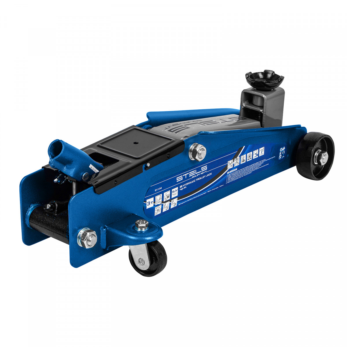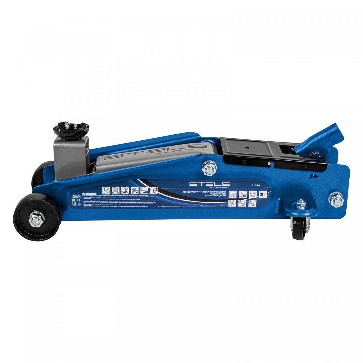 Подкатной гидравлический домкрат Stels 51134 с высоким подъемом 190 мм позволяет поднимать грузы весом до 3 т на высоту 535 мм и подходит для автомобилей класса SUV с увеличенным дорожным просветом. Может использоваться для самостоятельного обслуживания авто.