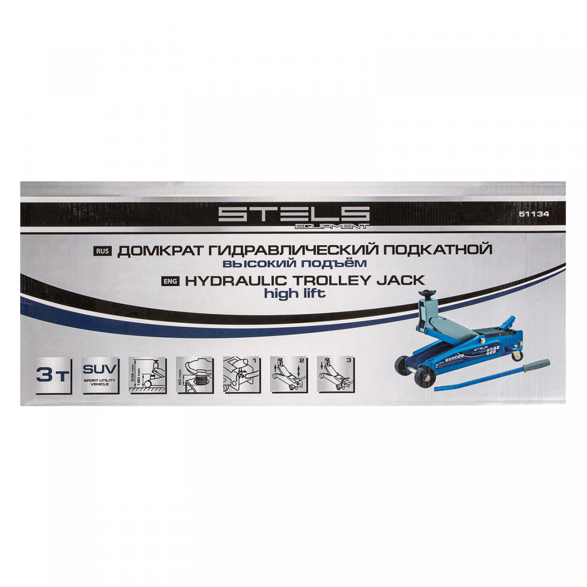 Домкрат гидравлический подкатной, высокий подъем, 3т, SUV, 190-535 мм Stels