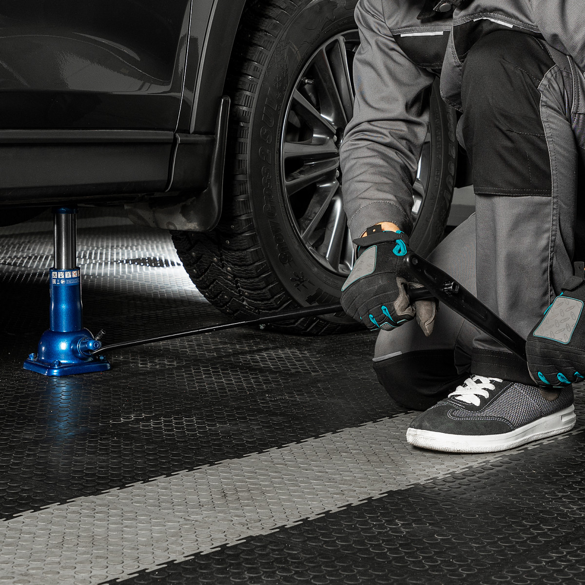 - Удобная транспортировка — компактный домкрат весом 3,93 кг легко помещается в багажник автомобиля.