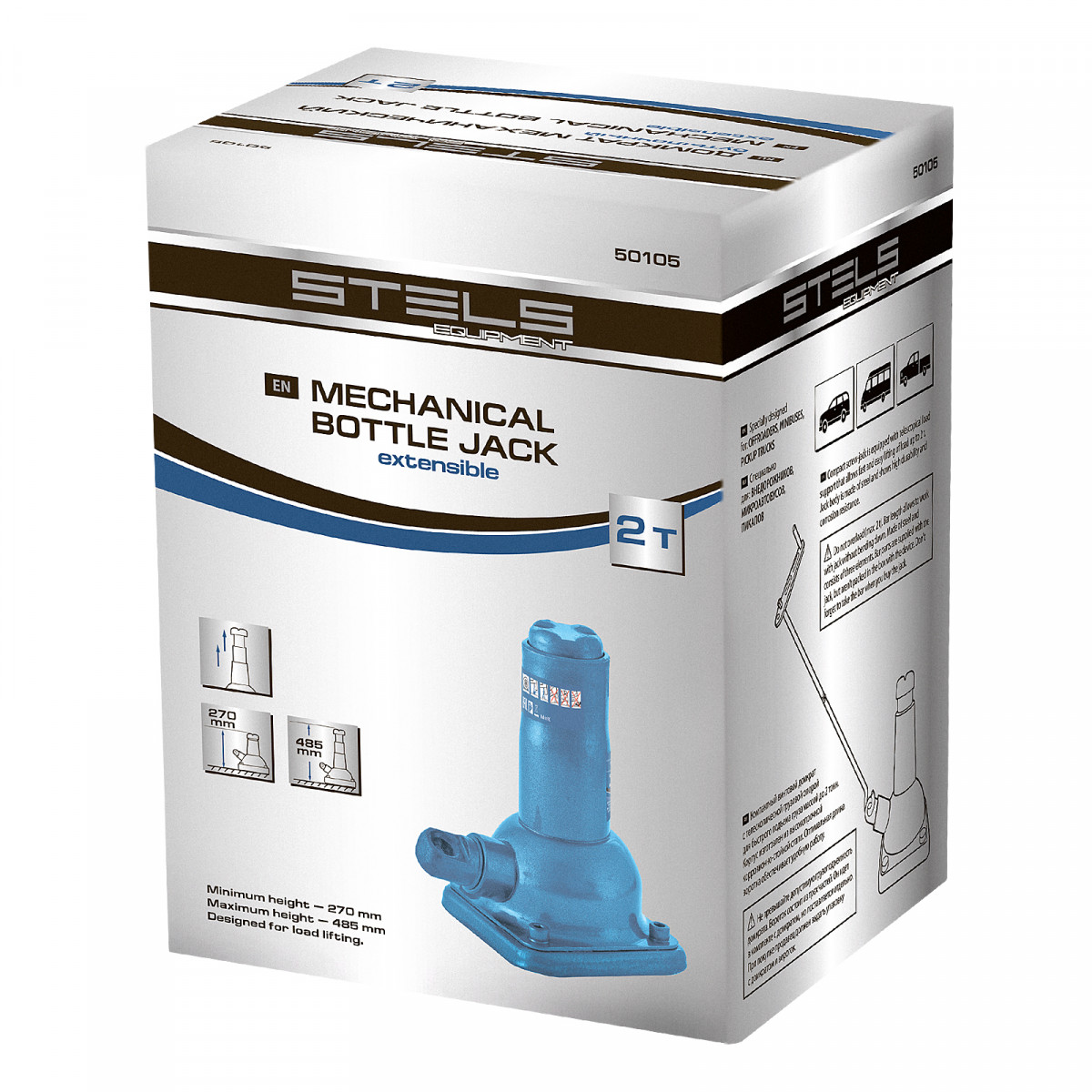 Механический бутылочный домкрат Stels 50105 состоит из 2-х частей: самого домкрата и ручки, имеет телескопический шток и используется для быстрого подъема грузов массой до 2 т на высоту 270-485 мм. В комплект входит вороток из трех частей для работы в труднодоступных местах. Домкрат предназначен для самостоятельного применения, будет полезен владельцам легковых автомобилей в дороге и гараже.
