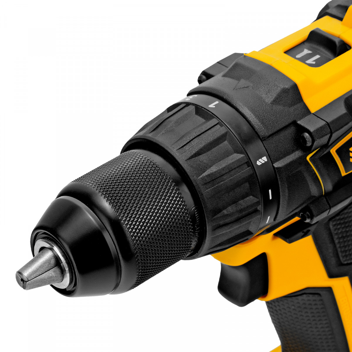 - Универсальность — дрель-шуруповерт совместима с любым Li-Ion аккумулятором и зарядным устройством единой платформы Denzel Battery System 18V.