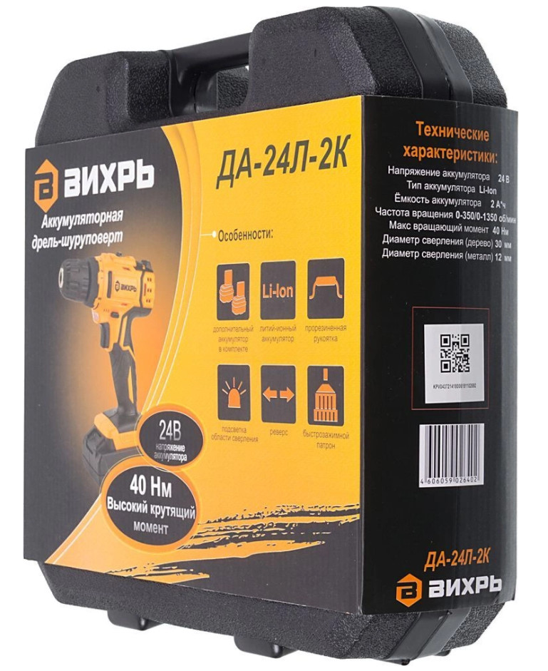 Дрель-шуруповерт аккумуляторная ДА-24Л-2К ВИХРЬ