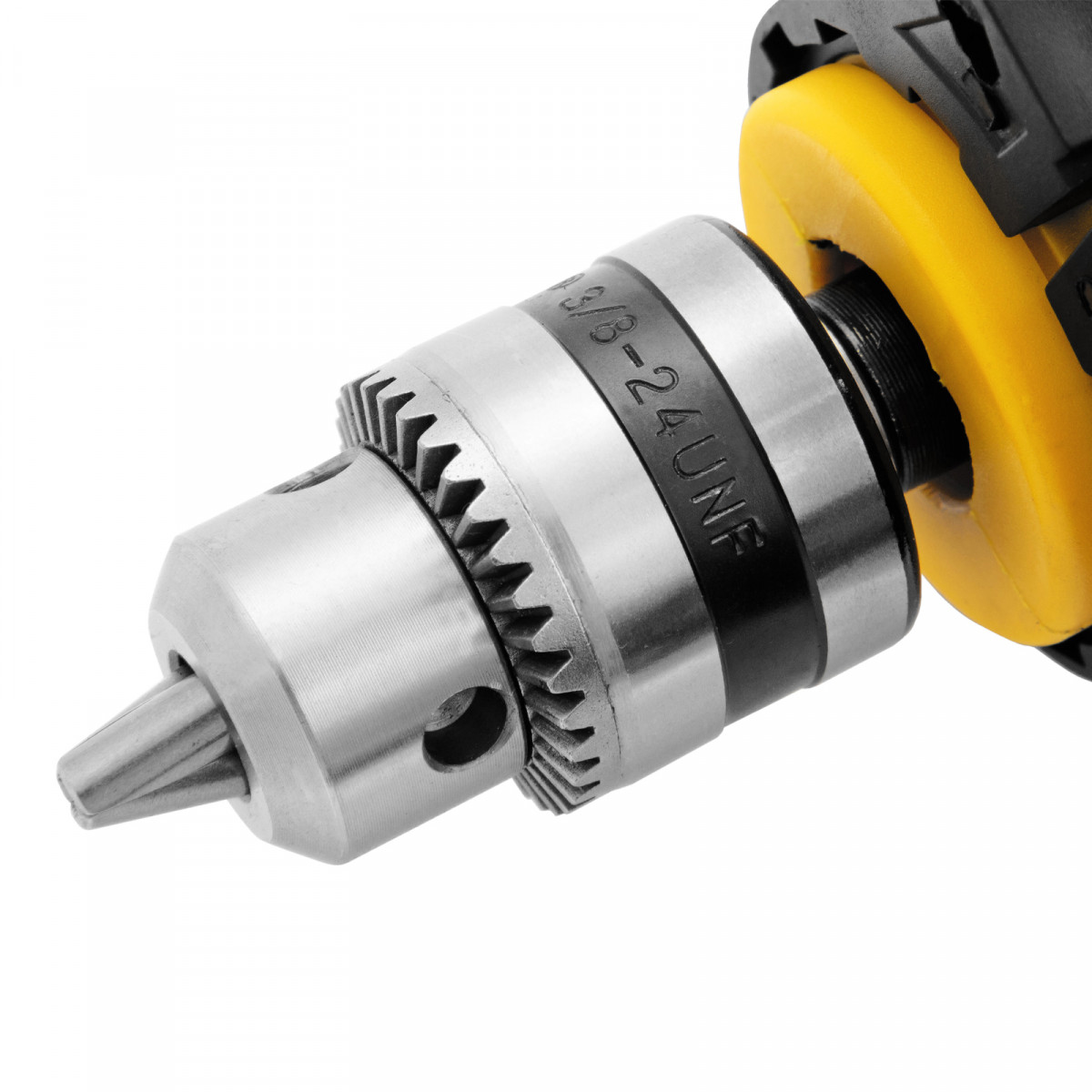 - Комфортная работа — обрезиненная боковая рукоятка не выскальзывает из руки, дрель весит 1,7 кг, что позволяет долго работать без ощущения усталости.