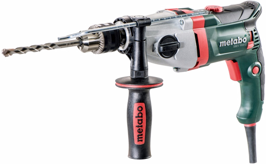 Ударная дрель Metabo SBEV 1000-2 применяется для сверления отверстий в металле, кирпиче, бетоне и древесине. Она имеет полноволновую электронику Vario-Tacho-Constamatic (VTC), позволяющую управлять числом оборотов в соответствии со свойствами материала и сохранять их постоянными под нагрузкой. Корпус редуктора, выполненный из литого под давлением алюминия, обеспечивает оптимальное отведение тепла, высокую прочность и долгий срок службы модели. В качестве оснастки используется быстрозажимной сверлильный патрон размером 1.5-13 мм.
